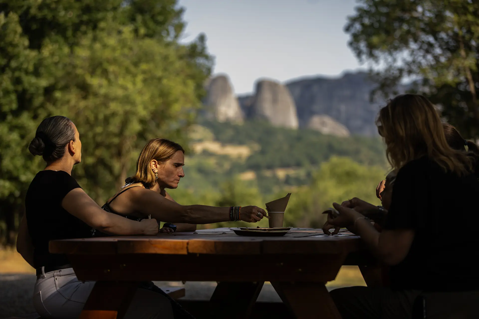Οι επιβλητικοί βράχοι των Μετεώρων κάνουν τη διαδρομή ακόμη πιο μαγική.